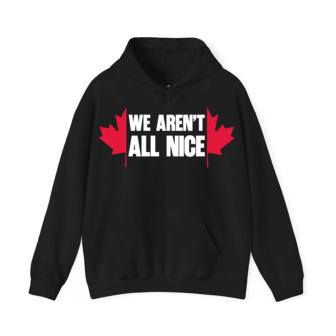 Tired of Canadians being looked at as a bunch welcoming doormats? Well, we agree! Rock this “We Aren’t All Nice” hoodie and show the invaders that we are standing our ground, and protecting our culture.